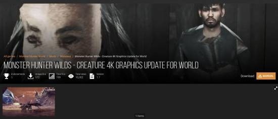 作者调侃,这个MOD会让玩家体验到《怪猎荒野》的“画面艺术”,将最新一代3A级画面的乐趣和体验带入到《怪猎世界》当中。