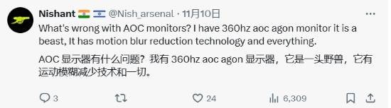 据了解,无论是此前的各大赛事还是职业选手自用,他们都更偏爱明基旗下的卓威显示器,TN屏配合仅1080P的分辨率,能把帧数拉到最高而延迟则最低。这次AOC成为了赛事赞助方并提供了旗下的高端显示器,但这也引起了这些不认可这一品牌的职业选手的不满。但玩家却不太认同,反呛道:540HZ刷新率的显示器都不行?给你配明基的显示器你就能夺冠吗?