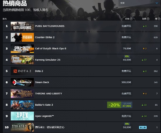 值得一提的是,《潜行者2》不仅支持首日XGP订阅服务,也未采用D加密技术,通常这都可能会对销量造成一定程度影响。然而即便如此,据Steam数据显示,《潜行者2》目前已攀升至畅销榜第七名,并在多国的销售榜上位居前列,尤其在欧洲市场表现亮眼。