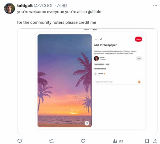 日前,R星土耳其社区官方推特发布了一张《GTA6》主题的壁纸,夕阳下的画面看上去十分美好,然而玩家们却对这张壁纸有了不同的想法。鉴于R星官方推特已将该土耳其社区官方纳入关注列表里,不少玩家认为这或许意味着《GTA6》即将会迎来一些新的消息,但也有玩家指出,该社区官方发布的只是一张普通的壁纸,并没有什么值得特别注意的地方。