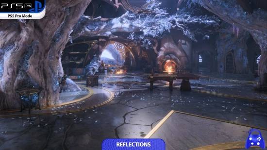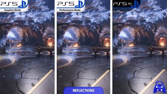 测评者指出《战神:诸神黄昏》PS5 Pro增强模式的表现相当于升频到4K的画质模式。画质模式与性能模式在细节方面有所不同,前者阴影、环境光遮蔽效果更佳,绘制距离更长,反射效果更好,还带有一些纹理细节。