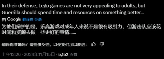 《乐高地平线》惨淡的表现引发了玩家们的热议。有网友替制作组解释道:乐高游戏的吸引力实在有限,应该把资源用在更有意义的项目上。