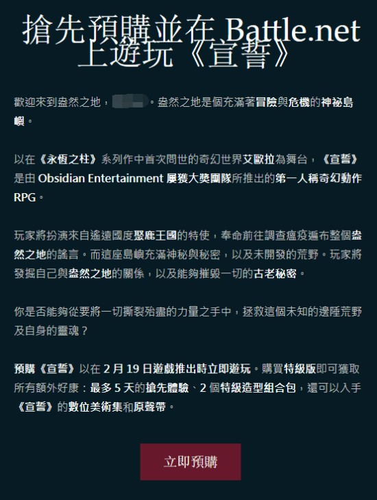今日,Xbox大作《宣誓》正式宣布开放预售,并于明年2月18日正式上线,售价70美元。值得注意的是,本作目前也登陆了战网平台,而这意味着——玩家可以使用《魔兽世界》金币购买本作。