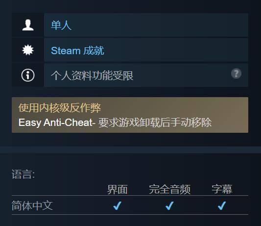 然而有细心的玩家注意到,Steam页面标注这款游戏居然包含“内核级反作弊”程序Easy Anti Cheat(小蓝熊),在玩家社区引起讨论。