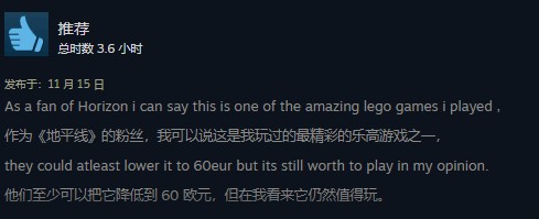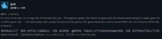 再来看看玩家具体评价:好评主要来源于粉丝向和乐高元素的欢乐加成,玩法方面相比同类游戏却并不亮眼;而大多数的玩家评论(包括好评与差评)在吐槽游戏的定价过高,甚至快赶上《地平线》正作刚发售时的价格。