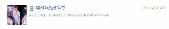 《英雄联盟》S14总决赛已在11月3日落下帷幕,BLG战队同T1鏖战五局,但最终以总比分2:3遗憾落败。近日B站电竞UP@超抽风的飞机爆料称,BLG将维持现有的阵容再打两年,引发网友们热议。截止至发稿时,话题“曝BLG全员续约”登上贴吧热议榜第二。