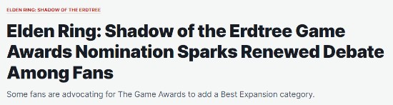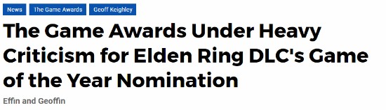 早些时间,TGA调整规则,明确DLC与重制版游戏同样有资格参与年度游戏大奖评选。随即,《艾尔登法环:黄金树幽影》凭借其广受好评的扩展内容顺利拿下年度游戏、最佳艺术指导、最佳RPG游戏、最佳游戏指导四项提名。然而,这一结果也在玩家群体中再次引发了不小争议。