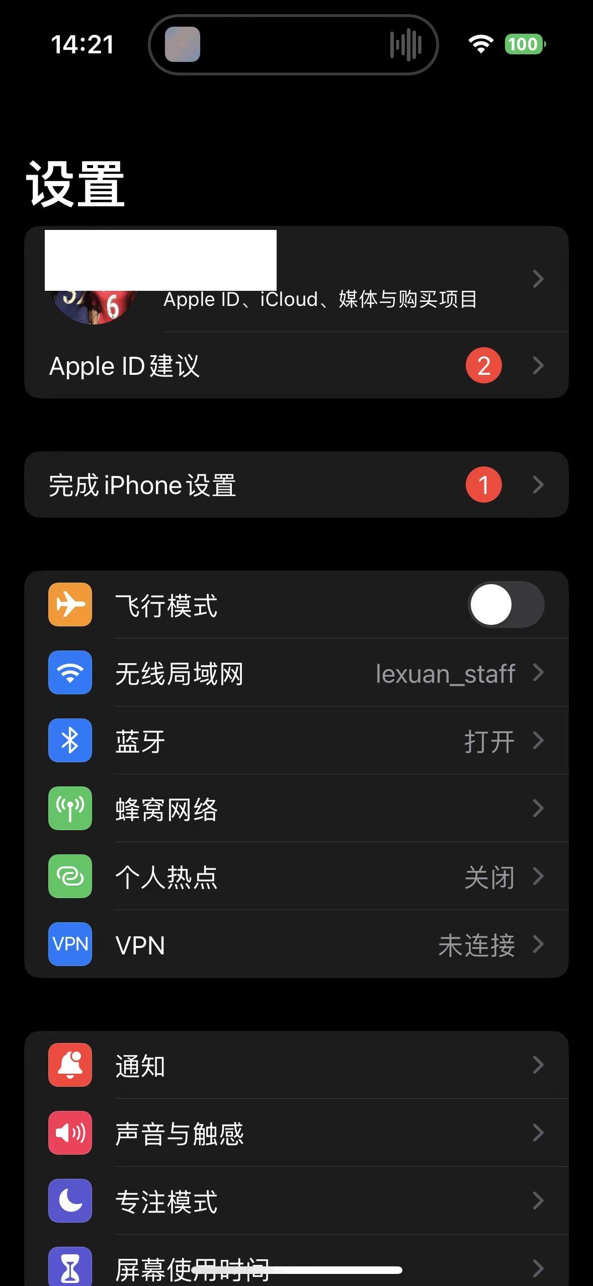 3、打开“设置”App,并轻点你的姓名。