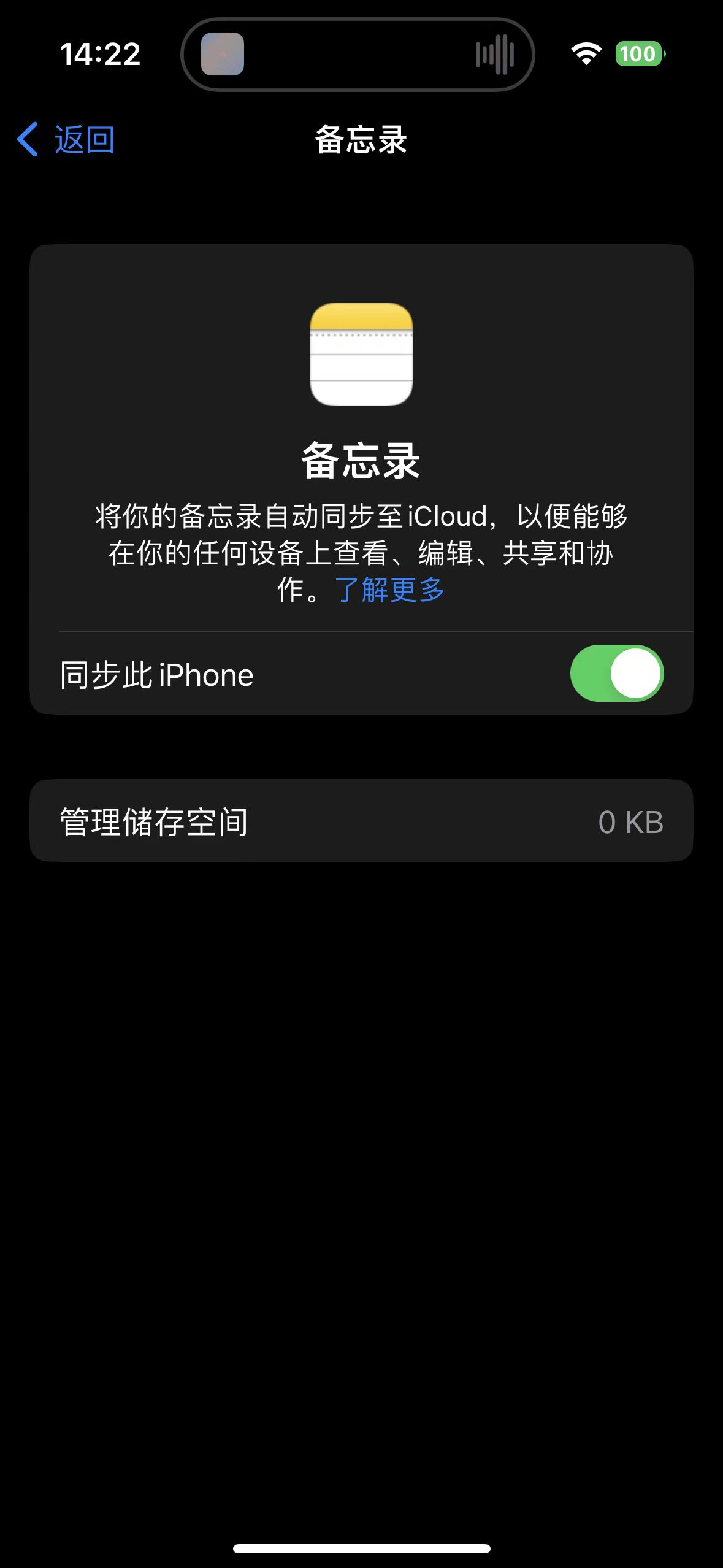 5、确保已打开“同步此 [设备]”,然后查看“备忘录”App。