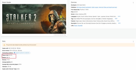 根据数据统计网站Gamalytic的数据显示,截止至发稿时,《潜行者2》仅发售两天销售总额就超越了已发售近一个月的《龙腾世纪4》。