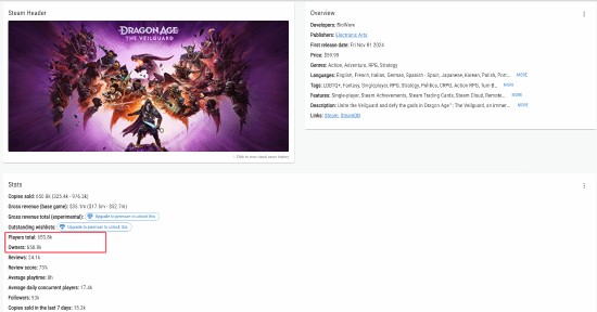 值得一提的是,《潜行者2》是一款首发XGP的游戏,有大量玩家会通过Game Pass来游玩本作。并且本作目前并没有登陆PS平台,而《龙腾世纪4》是一款全平台发售的游戏。