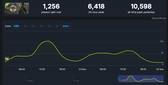 自11月22日试玩版发布以来,其Steam玩家在线峰值为10598人,当前在线玩家数千余人。这对于一款免费发布的试玩Demo来说,人气并不算高。各位有什么看法呢,欢迎在评论区讨论。