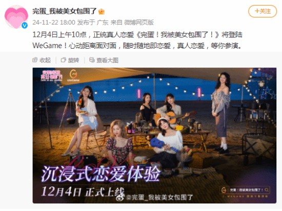 《完蛋!我被美女包围了!》官方宣布,该作将于12月4日上午10点登陆WeGame!心动距离面对面,随时随地即恋爱,真人恋爱,等你参演。