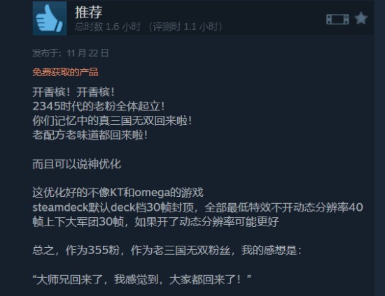 玩家们纷纷表示记忆中的《真三国无双》回来啦!这次的游戏内容突出一个战斗爽!