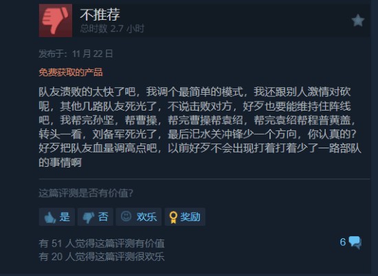 不过也有一些玩家在吐槽游戏中的队友太弱了,不帮忙就会光速溃败,一不小心队友就四万了。