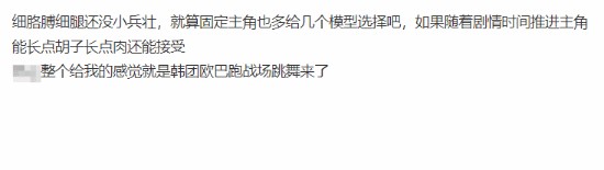 此外还有不少网友提到了本作中不提供捏脸系统而是固定主角的设定:“细胳膊细腿还没小兵壮,就算固定主角也多给几个模型选择吧!整个给我的感觉就是韩团欧巴跑战场跳舞来了!”