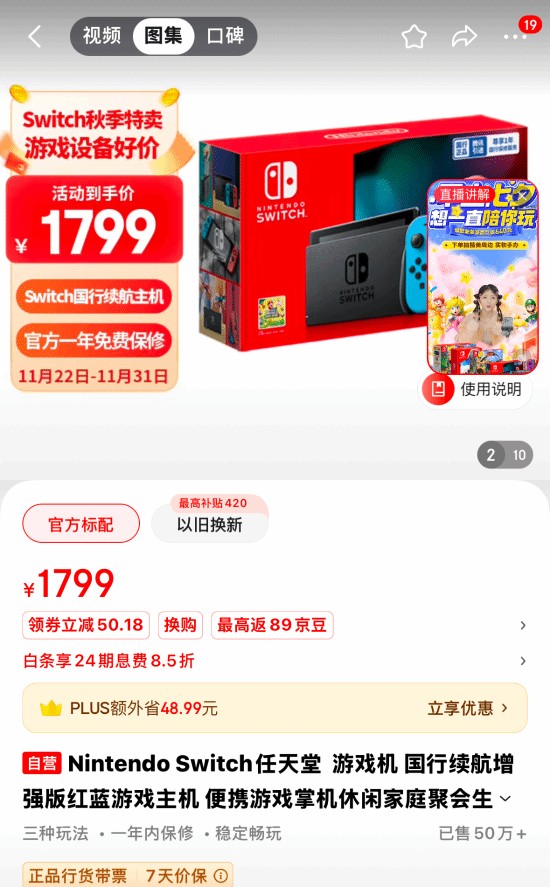 各大电商平台显示,国行版NS目前仍然在售,除了可玩游戏阵容少以外,价格相较于其它版本也没有优势。