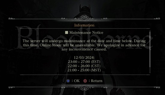 就在今日《血源》游戏内发布公告,宣布游戏服务器将于2024年12月3日进行维护,维护时间为4个小时。