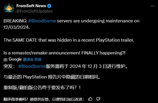这一消息引起了《血源》粉丝们的热议。玩家们纷纷表示,这是不是意味着《血源》的重制版或是PC版终于要有消息了?