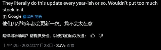 不过也有玩家表示,这只是每年的例行更新罢了,别这么激动。