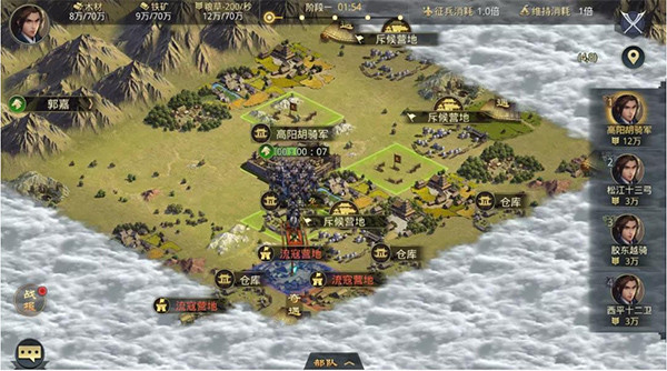 在该玩法中,所有土地不会自动提供资源,玩家必须通过剿灭流寇营地来获得资源,保障军队的供给。同时,占领无主仓库可提高资源上限,获取少量资源补充。摧毁敌方势力的仓库,不仅能减少对方的资源上限,还能掠夺一定的资源。而攻陷敌方的主城,将直接淘汰敌人并获得其剩余的资源。