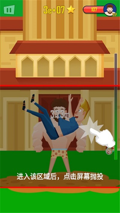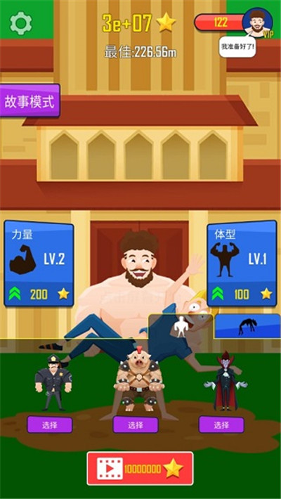 角色的力量和体型将决定抛出的高度与远度,玩家可以通过赚取的星星币来升级角色的力量和体型,这样下一次就能抛得更高、更远。