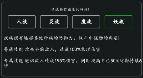 特点:妖族拥有极高的生存能力,在前期输出相对较低,但在后期团战和高难度副本中极为耐打。
