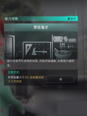 当玩家的 异常能量大于30 时,青龙将 自动进入工作状态,开始协助玩家进行 烹饪。