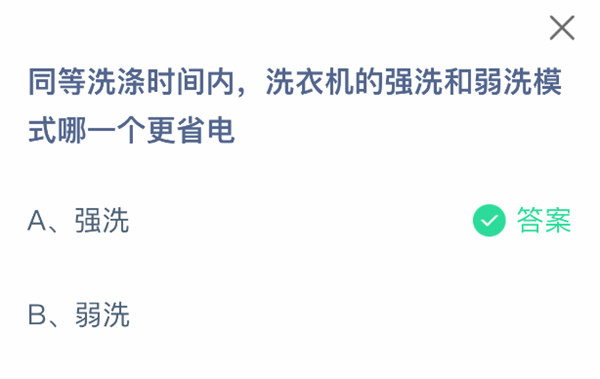 2、同等洗涤时间内,洗衣机的强洗和弱洗模式哪一个更省电?