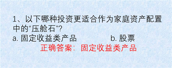 1. 在家庭资产配置中,哪种投资类型更适合作为“压舱石”?