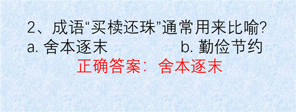 2. 成语“买椟还珠”通常用来比喻什么?