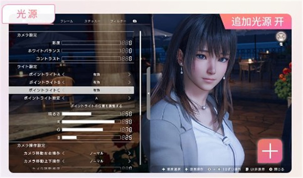 3. 为了让拍照更具灵动感和氛围,游戏中还允许玩家额外设置多达3处光源。通过巧妙布置这些光源,玩家能够创造出不同的灯光效果,使女孩们的外貌变得更加可爱、迷人。精准的光线控制能够突显人物的细腻质感,增加照片的立体感和层次感。