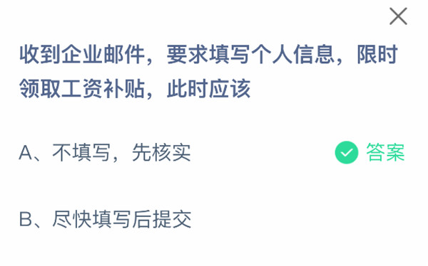 1. 收到企业邮件,要求填写个人信息,限时领取工资补贴,应该怎么做?
