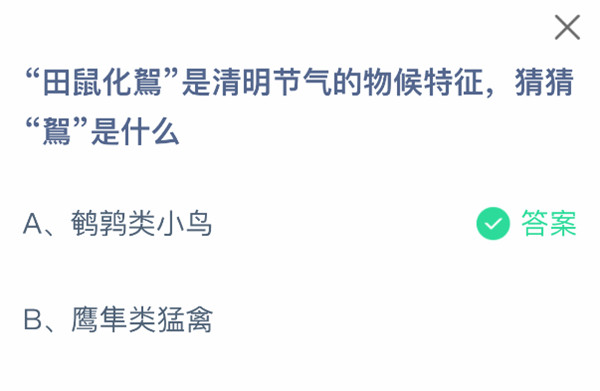 2. “田鼠化鴽”是清明节气的物候特征,猜猜“鴽”是什么
