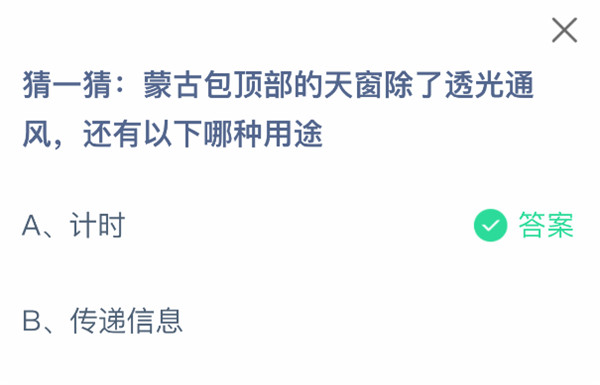 2、猜一猜:蒙古包顶部的天窗除了透光通风,还有以下哪种用途