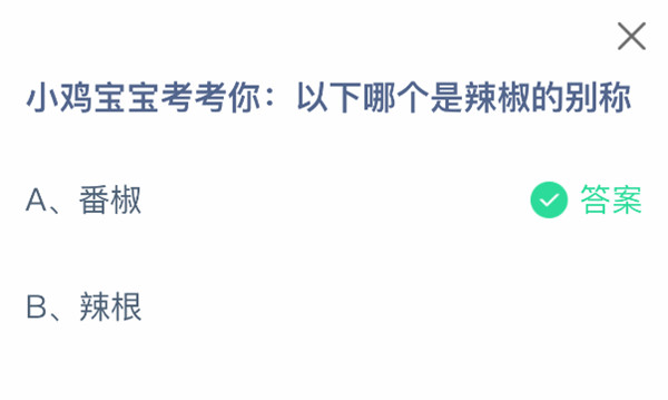 1、小鸡宝宝考考你:以下哪个是辣椒的别称