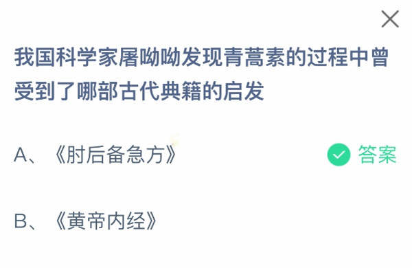 答案:《肘后备急方》