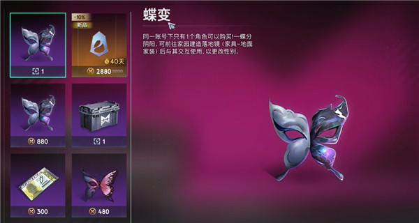 此外,需要特别注意的是,在同一账号下,只能有一个角色购买蝶变道具。如果你在一个账号下拥有多个角色,购买蝶变时一定要留意,避免误将蝶变道具购买给了那些不需要进行性别转换的角色。这样一来,你可以更好地管理自己的道具资源,避免浪费。