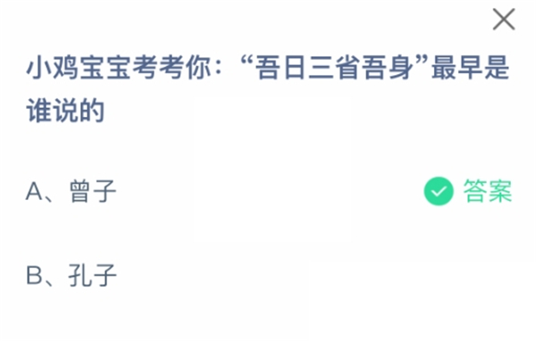 1、小鸡宝宝考考你:“吾日三省吾身”最早是谁说的