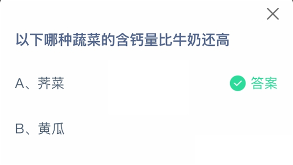 2、以下哪种蔬菜的含钙量比牛奶还高