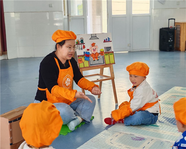 随后,仇存老师结合生活情境创设了富有童趣的音乐活动《厨房快乐之旅》。课堂上,她与孩子们一起扮演可爱的小猪角色,伴随着轻快的音乐,模拟厨房中的各种生活场景,孩子们在模仿与互动中获得了情感体验与生活技能的启蒙,仿佛真正置身于欢快的厨房世界,乐在其中、学在其中。