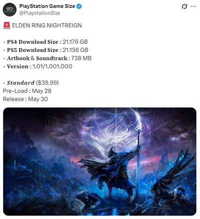 据PlayStation Game Size透露,艾尔登法环即将推出的全新DLC黑夜君临(Shadow of the Erdtree)在PlayStation平台上的文件容量表现出色,引发玩家热议。具体来看,PS4版本的安装包大小为21.176GB,而PS5版本则略微更小,为21.156GB(对应的版本号分别为1.01和1.001.000)。