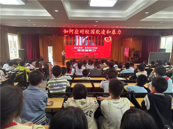 为进一步增强学生的法治观念,提高他们的自我保护意识,并构建更加和谐、安全的校园环境,兴泰小学于5月23日下午特别邀请了姜堰区检察院法治副校长廖小梅同志,为全校师生开展了一场主题为“防校园欺凌”的法治讲座。