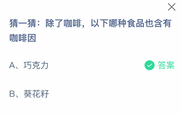 1、猜一猜:除了咖啡,以下哪种食品也含有咖啡因
