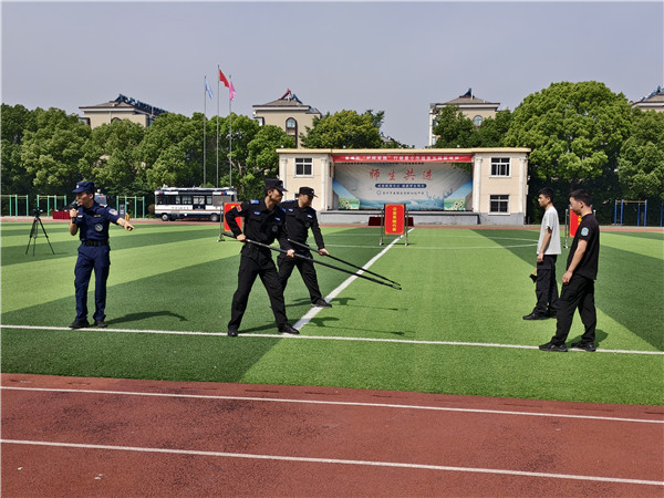此次培训采取了“理论讲解+实操演练”的方式,旨在提升校园安全工作人员的实战能力。巡特警大队的专业教官为参与人员详细讲解了防卫器械的使用方法,包括钢叉、盾牌、长警棍等,并进行了一一示范。