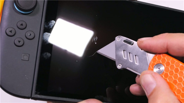 在测试开始前,这位博主还特意将屏幕原厂贴上的保护膜撕掉了。任天堂此前就特别提醒用户不要撕掉这层膜,因为它并非普通的出厂贴膜,而是一层具备实际保护作用的防爆涂层。而Zack显然不信邪,想看看撕掉保护膜后,Switch 2的屏幕还能不能“扛住”。