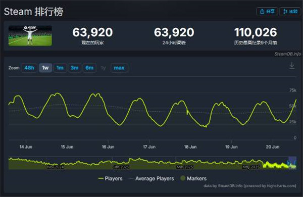 作为一款主打五人制对战的街机风格足球游戏,该作自上线首日便展现出惊人的人气,Steam平台同时在线玩家人数迅速突破92,841人,成功跻身平台热门榜单,甚至一度超越了诸如EA Sports FC 25等同类体育大作的当前在线人数,成为近期游戏圈最受瞩目的新秀之一。
