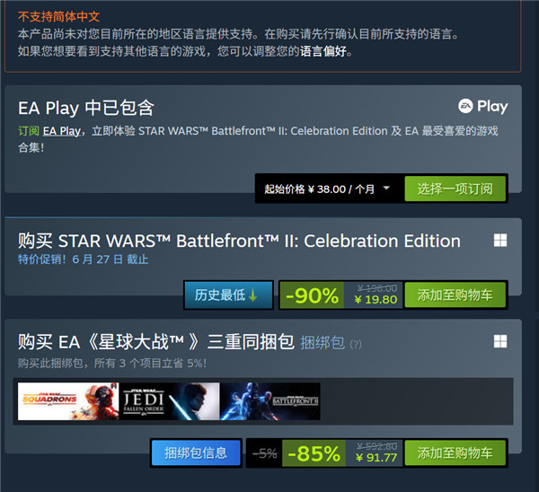 如今,游戏的热度和在线人数回升,与当前在Steam平台进行的史低1折促销活动密不可分。这次促销将星球大战:前线2的价格从原价198元降至仅售19.8元,创下了历史最低价。这一极具吸引力的折扣,加上游戏支持繁体中文,吸引了大量新玩家的加入,也让老玩家重新拾起这款曾经的经典之作。需要注意的是,促销活动将持续到6月27日,因此有兴趣的玩家不容错过。