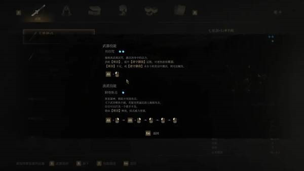 此外,长按鼠标右键(手柄RT或R2)可以释放蓄力重攻击和各种武器流派技能,这些技能也可以通过消耗须羽来强化,强化后会提高技能的释放速度和伤害。