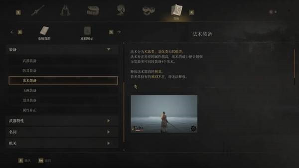 红色人影下方则显示当前的【须羽】层数,随着游戏进展,可以通过斗转星羽解锁更多【须羽】槽位,最多可达到5层。须羽是游戏中的重要资源,可以用来释放各类法术。按G键(手柄Y或三角键)释放当前选择的法术,法术包括术法、羽化法术和其他增益法术。术法一般需要较长时间的引导,但伤害高;羽化法术则能在受到攻击时触发完美闪避;其他法术则主要提供增益效果。